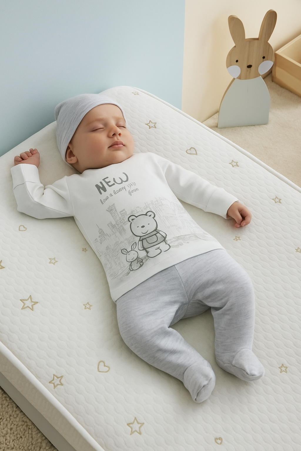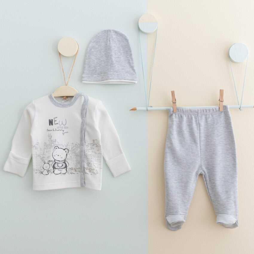 طقم بيبي ناعم 3 قطع – قطن 100% برسومات ظريفة (0-3 أشهر)