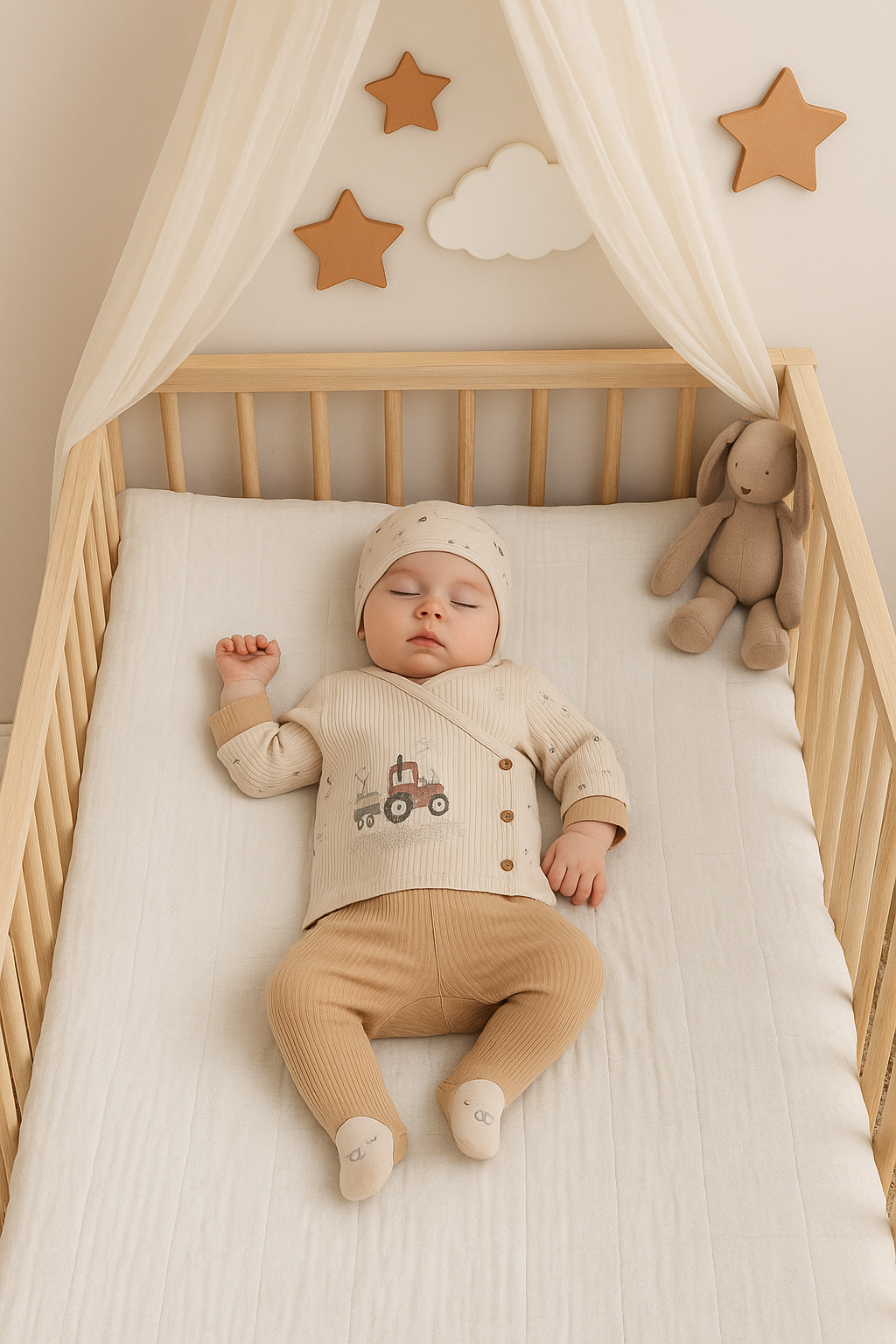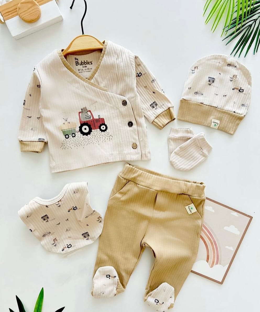 • طقم بيبي دافئ برسمة الجرار - 5 قطع متناسقة