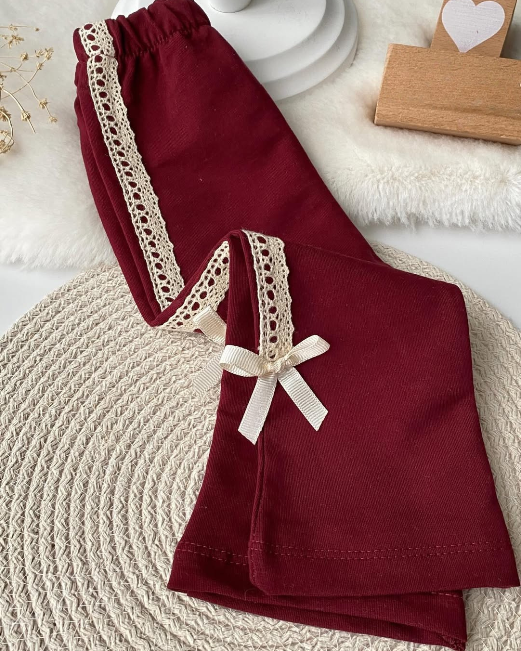 طقم بناتي أنيق بتفاصيل دانتيل وزهور