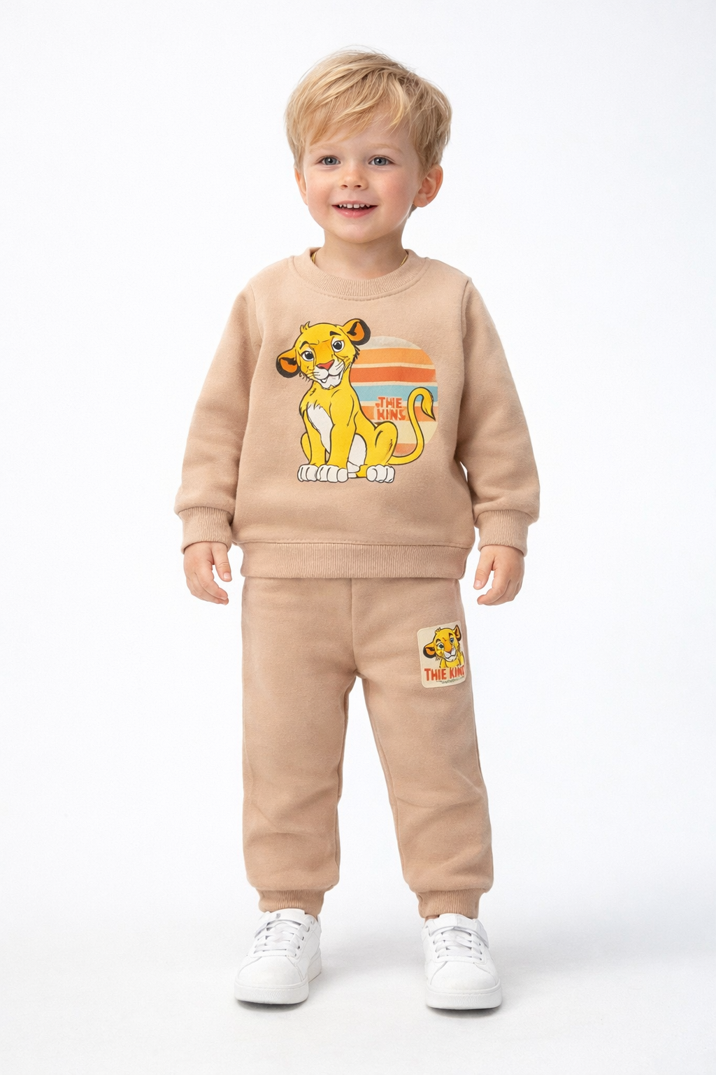طقم شتوي للأولاد الصغار – كنزة وبنطال بتصميم الأسد الكرتوني