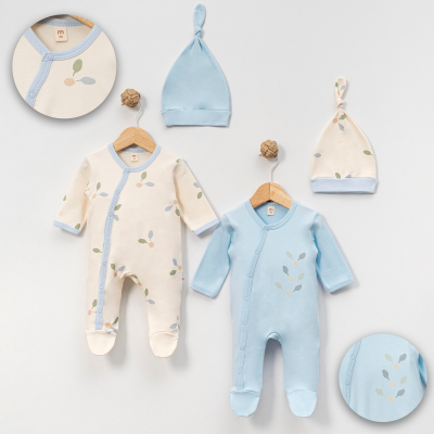 طقم حديثي الولادة بطبعة أوراق لطيفة – قطعتان مع قبعة